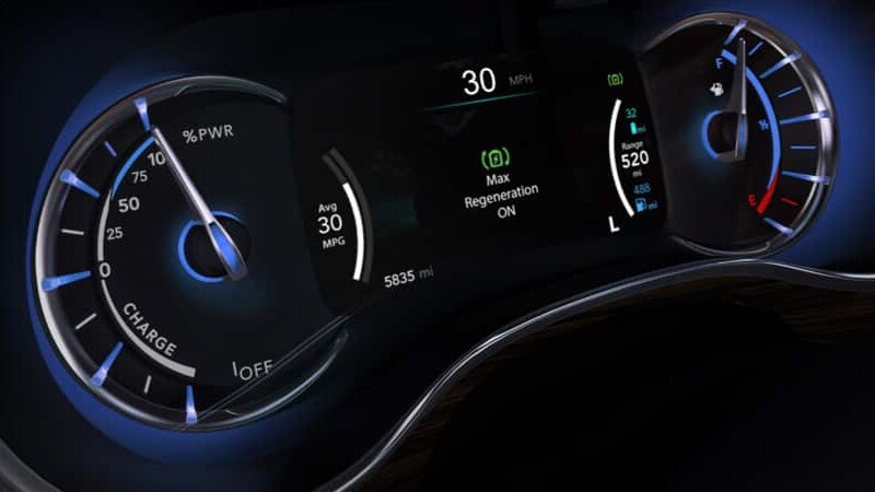 Using the built-in regenerative braking feature, the Chrysler Pacifica Hybrid is capable of helping charge the battery when braking or stopping. When enabled in the "L" drive mode, the standard Max regeneration cluster messaging icon appears to assure you of the increased system regeneration.