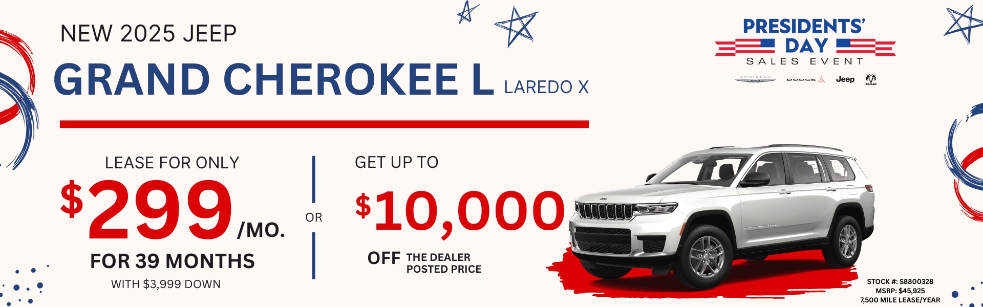 Lester Glenn Discount: - $4,000First Responder Appreciation: - $500Lease Loyalty: - $2,000National Retail Cash: -$2,500Stellantis Loyalty: -$1,000